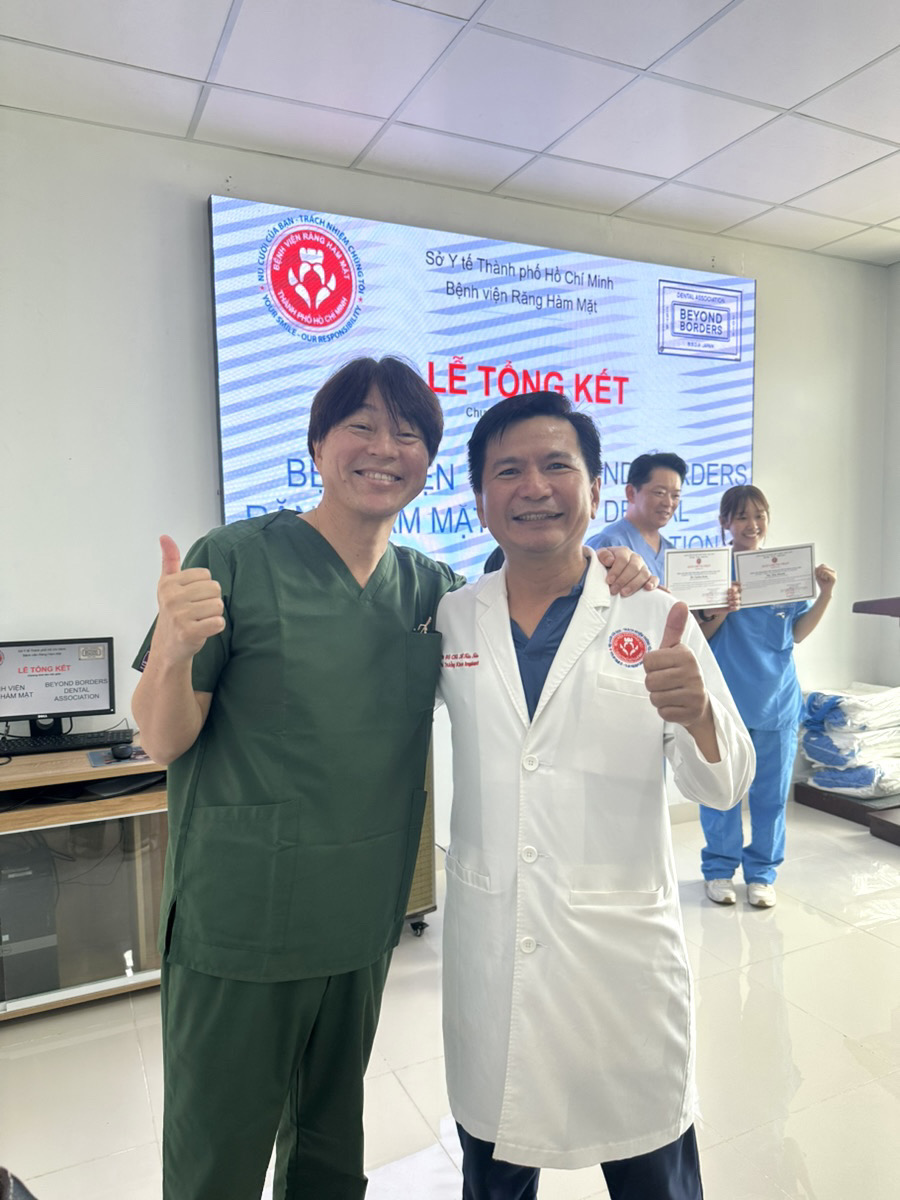 2024.10.05 活動報告 2024.10.2-4 BBDA ベトナム政府公認ボランティアインプラントコース3日間 2024.10.2-4 BBDA ベトナム政府公認ボランティアインプラントコース3日間 当院の院長、今井恭一郎が役員を努める"BEYOND BORDERS DENTAL ASSOCIATION"通称BBDAの活動報告です。 BBDAは歯科医師、歯科技工士、歯科衛生士、助手と歯科医療に携わる全てのスタッフを対象に世界の様々な知識や技術を垣根なく学び合い、交流を深める場を提供しています。 事務局は日本ですが研修活動は日本、アジア、欧米、オセアニアなど様々で今回は10月2日〜4日の3日間ベトナムで行いました。 12回目を迎えるBBDA主宰のベトナムインプラントベーシックコース。 日本の歯科とベトナムの歯科を結ぶ架け橋として活動してきました。 症例検討から術式の決定、実際の手術を通して姿勢や考え方などの細かな部分まで充実した指導を受けることが出来る素晴らしい取り組みです。 普段介助しない先生の手術に立ち会うことができるので新しい学びの発見もあります。 今回も20名の患者様の手術を無事に終える事ができました。 ベトナムの病院の方々、参加された日本の先生方、スタッフの皆様ありがとうございました。 1日目 カンファレンス 2日目 ライブオペ 懇親会 3日目 ライブオペ 修了式 質の高い歯科医療を日常的に提供。Providing high quality on a daily basis 八潮駅からすぐのフレスポ八潮2Fにある歯医者《今井歯科EAST 八潮》🏠埼玉県八潮市大瀬1-1-3 フレスポ八潮2階📞048-940-1150八潮駅からすぐの予防・審美に特化した歯医者《今井歯科WEST 八潮》🏠埼玉県八潮市大瀬1丁目2−1📞048-999-5020八潮駅から徒歩10秒の家族で通える歯医者《今井歯科クリニック 八潮》🏠埼玉県八潮市大瀬 6-1-1 TIMBER SQUARE102📞048-999-0007
