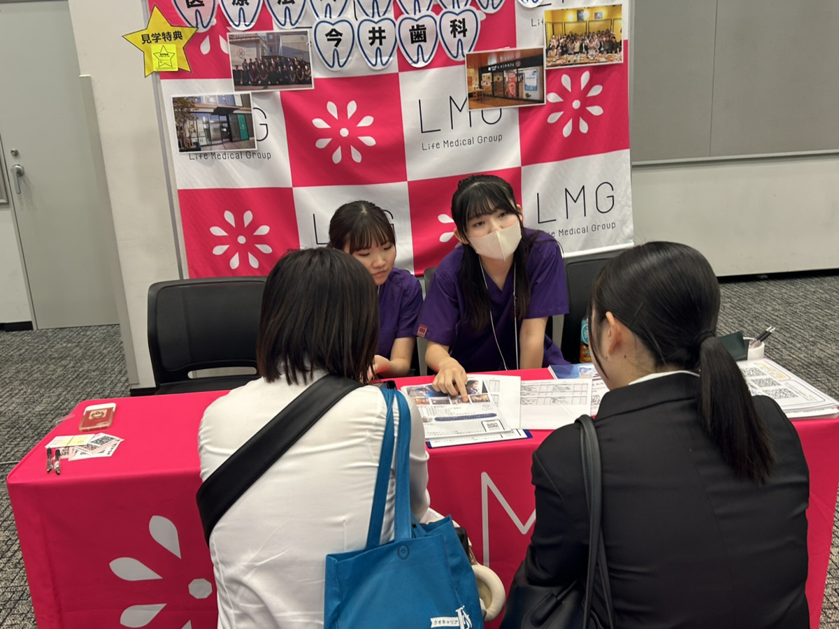 2年目の歯科衛生士たちがブース訪問者に自分たちの体験や入社動悸などを説明していました。